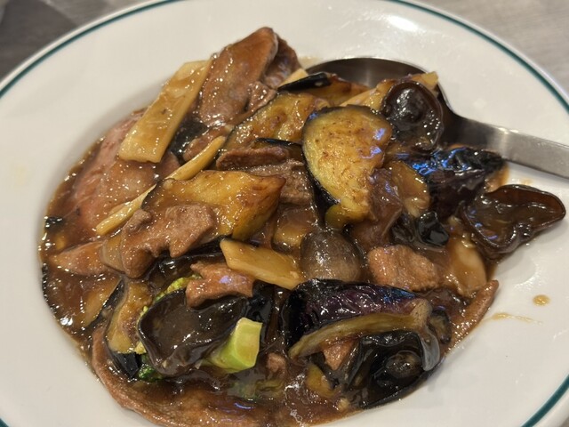 量もそこそこで味も濃すぎることなく美味しかった。茄子と豚レバーと旬野菜の味噌炒めは、ブロッコリー、筍、マッシュルームも入っててめっちゃ美味しい。レバーは少し臭みがあるけどレバーぽい!海鮮餃子みたいなのが、皮が厚くて、刀削麺を食べたからそれと同じ感じでした。