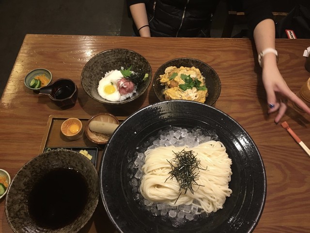 ざるのおうどん(二ツ玉)/ヘレカツとじ小丼/鉄火とろろごはん