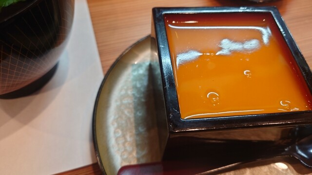 プリン自体は豆乳の素朴な風味で甘さがあまり無く、