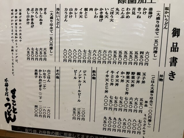 家族3人で、かき揚げうどん、ごぼう天うどん、カツ丼2杯で、2700円と超リーズナブルで頂けます。