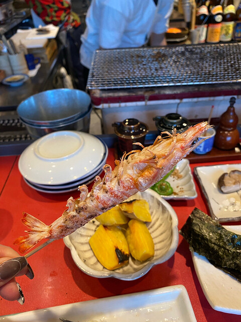 ○甘海老の醤油漬け 必ず頼む一品。殻も炙っていただけます。