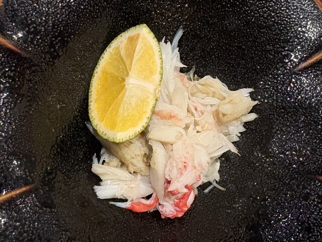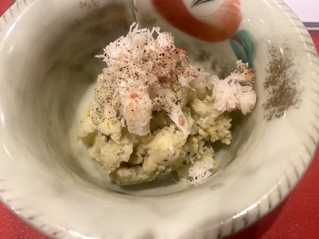 ○毛蟹 身を全てほぐしてくださってるので食べやすく最後は甲羅酒も出来ます。