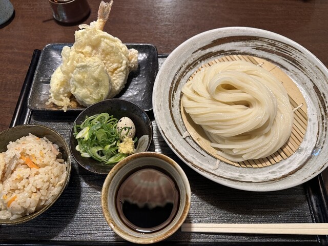 冷やしうどん天ぷらざるかやくご飯セット