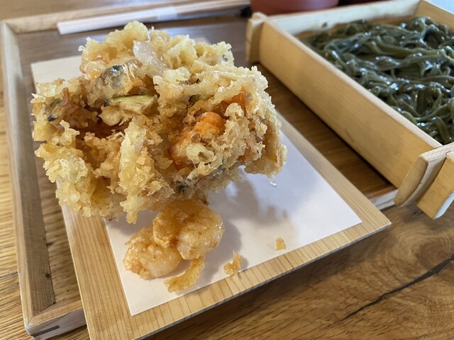 佐渡うどん、、見た目は、お蕎麦、つなぎが海藻とのこと。しかし、食べてみるとお蕎麦でなくて、うどんの味が後からジワリと出てくる。凄く美味い。なんだろう、この美味さ。しかも、かき揚げが、これも食べたい事がない位、海鮮の素材が活き活きしていて、パリッと衣がサクサクっと。この素材を美味くした揚げ方は素晴らしい。