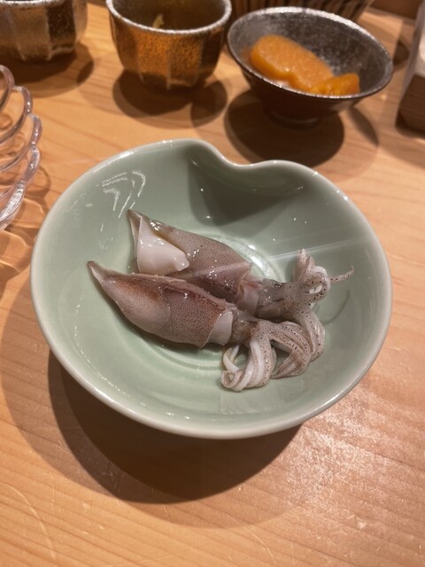 旬の「蛍烏賊」は丁寧に嘴と背骨を抜き、1秒のみ湯に潜らせる。