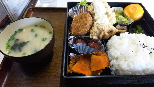 学生さんやサラリーマンでにぎわう定食屋さん 昼は日替わりお弁当 夜はチキンカツ 女性は水炊き定食なんていかがでしょうか