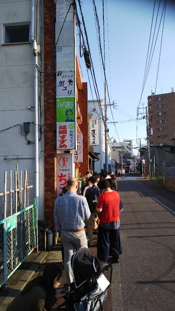 夕方の開店時間までに時間があり道の駅なんか寄ったりコンビニに寄ったりして開店時間17時を少し過ぎたくらいにお店の角に入るとすでに35人の長蛇の列 あわてて向かいの有料駐車場に停めて列へ 店員のカウントダウンがありなんとか食べれる模様 待つこと1時間以上 店内待ちなくカウンターへ案内
