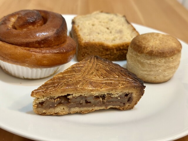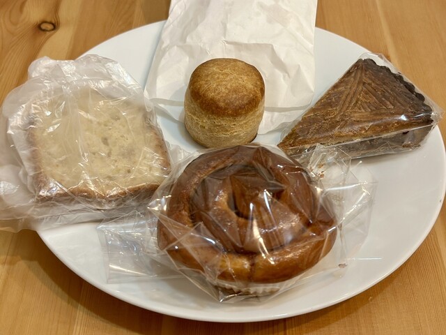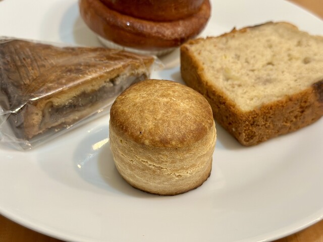 甘みはほとんどなく、ほぼバターの甘みなので、おやつにしたい場合はジャムなどあった方が良いなと思いました。私はアガペシロップを付けていただきました。表面はザクザクした食感で、中はぎっしり詰まっているので、小ぶりですが食べ応えあります。食べた後もしばらくバターが口の中に付き纏っていたのはちょっと…苦手でした。
