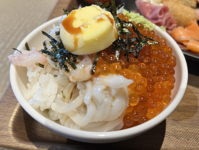 夕食の香箱がにとお造りの演出、朝食の自由に作れる海鮮丼、熱々ご飯にバターを、とかしちゃいました。