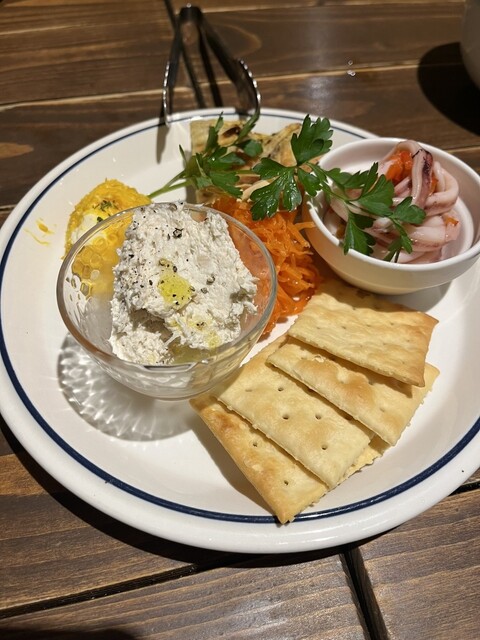 ☆チーズのパテ?ムース?、キャロットラペ、イカのマリネ、カボチャサラダ→パテ美味しい!キャロットラペも最近多いですね。