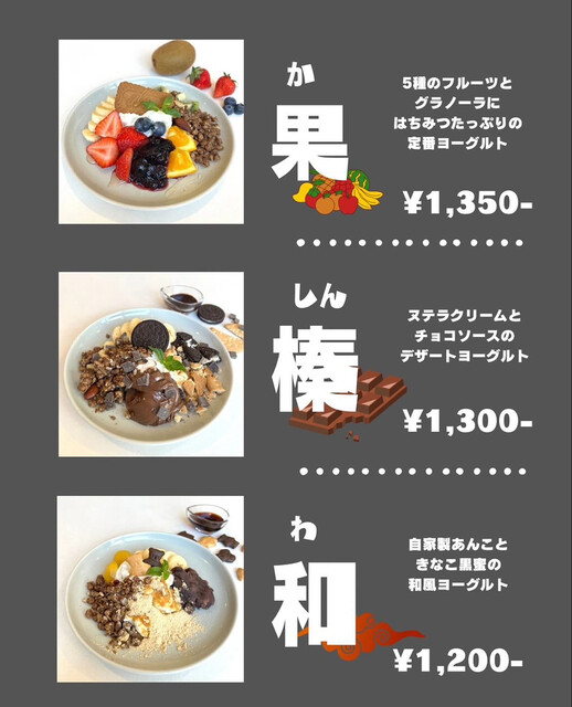 餡子・フルーツ・黒蜜きな粉・栗の甘露煮