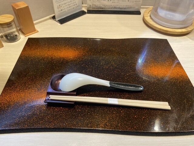 そしてテーブルに乗っているお膳が豪華。レンゲもツートンカラーでデザインにも拘りが感じられる。