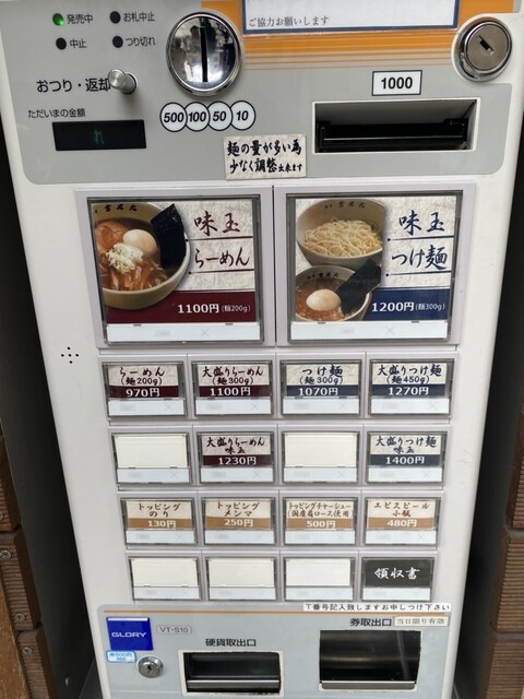 食券機で一番左上にある味玉ラーメン ¥1,100を注文。