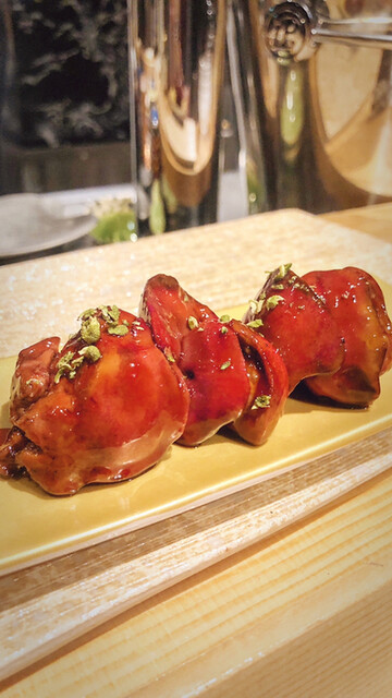 こらの焼き鳥店ですがあの広尾の有名店茶禅華の系列店なのですが、なんと茶禅華のお料理がこちらで頂けちゃいました!ぷりぷりな海老で紹興酒の甘い漬ダレが美味しい!