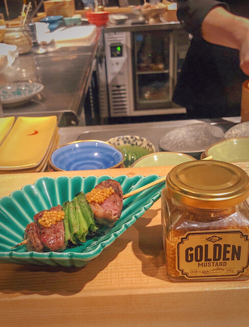 3串目は鴨です!鴨ネギ!!これが本当に大好きでした。この特別なマスタードも美味しくて、ジューシーな鴨との相性が抜群です。