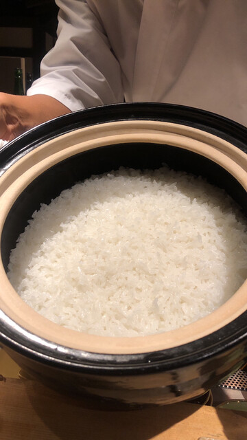 大きな土鍋で炊かれたご飯、普通じゃ買えない貴重なご飯「新潟県魚沼産コシヒカリ特別栽培米【雪椿】新米」とのこと、それをソーダストリームで炊き上げます。土鍋を開けると感動です!!