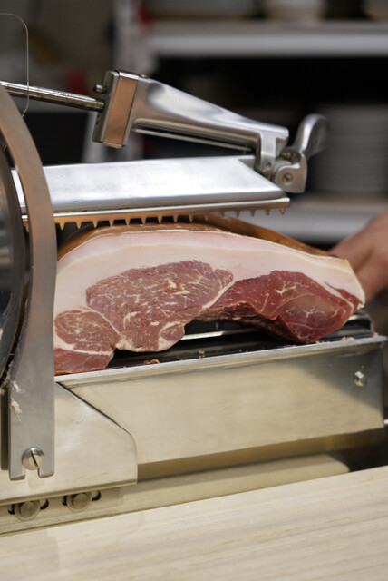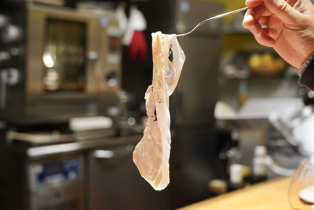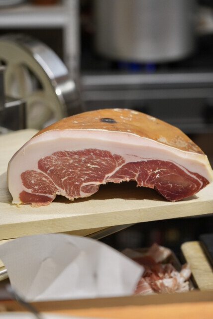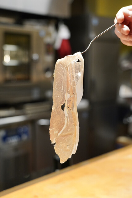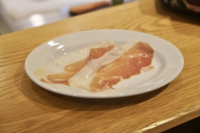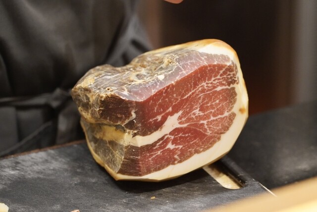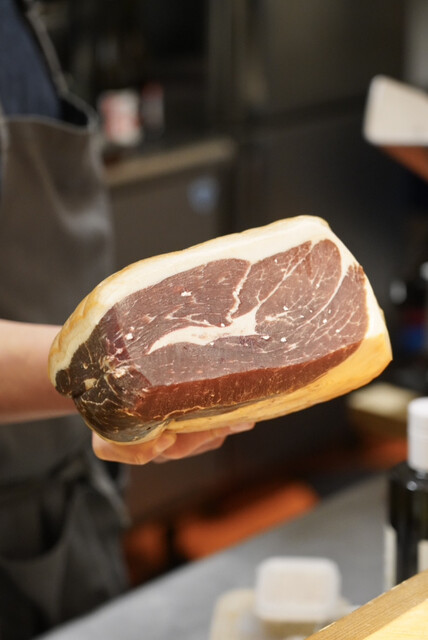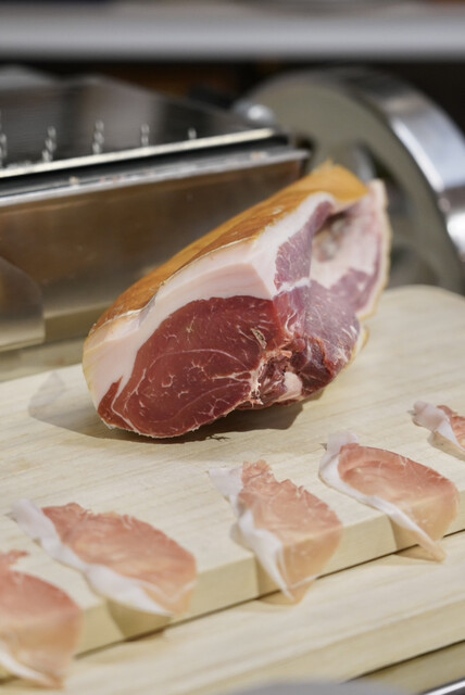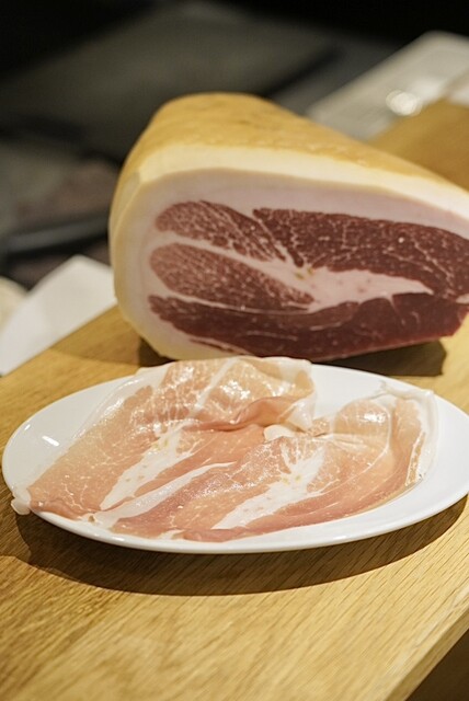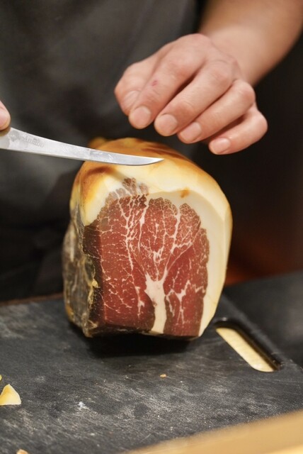 シェフ自らがその場でスライスした絶品の生ハムがいただけます。