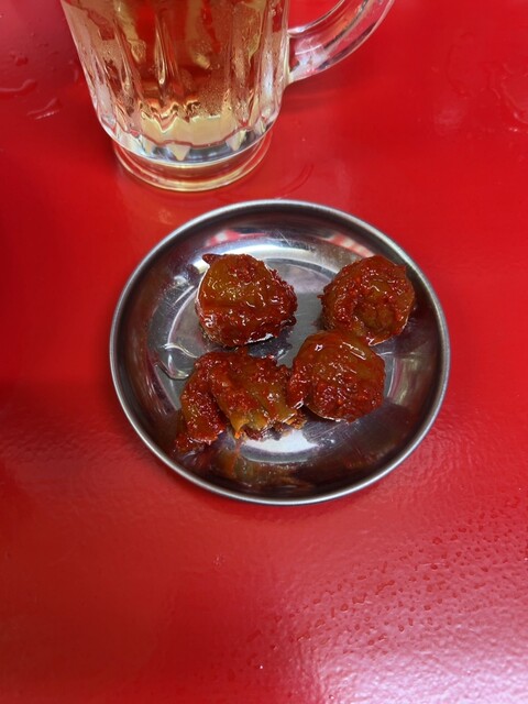 梅干しキムチ、というのがあり、よくある白菜のキムチに梅干しが混ぜてあるのかと思ったら、梅干しがまんまつけてたやつが出てきた!