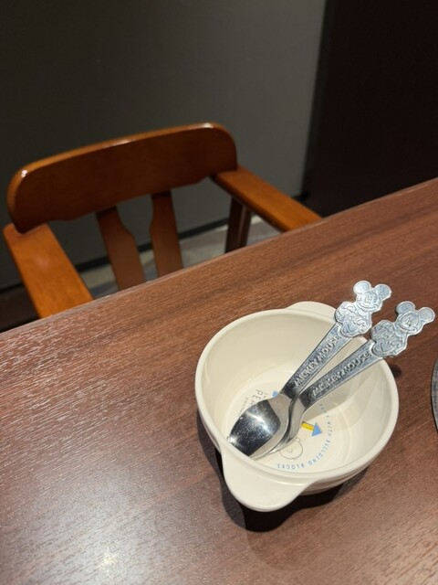 キッズチェア、子供用のお皿、蓋付きのお水まで準備してくださって安心♀️