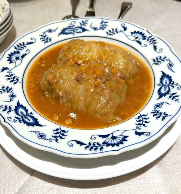 その後はロールキャベツにエビマカロニグラタン、〆はオムライスでデザートは初めてのプリンで大満足でした