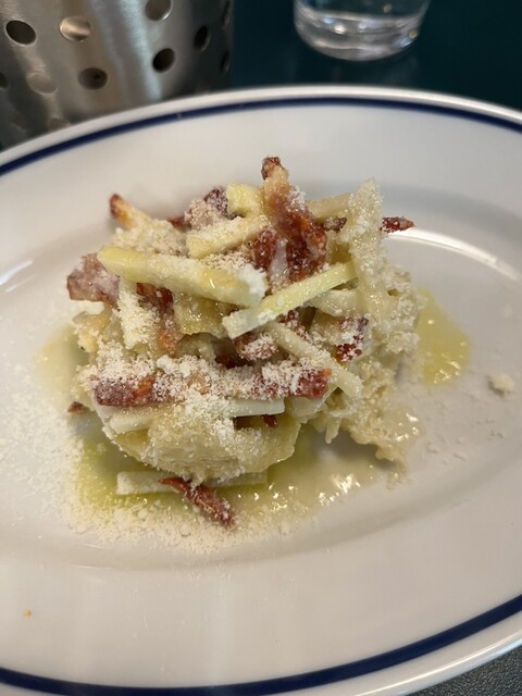 きくいも(菊芋)にこんな食べ方があるとは、知らなかったです。ベーコンと合わせてありました。非常に余談ですが、筆者が菊芋料理で一番好きなものは、「菊芋チップス」です。