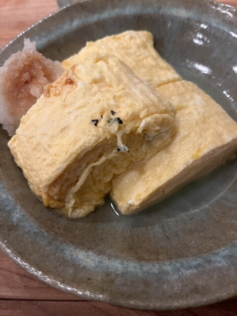 ・だしまき:シンプルにたまごと出汁で焼き上げられた、優しい味わいながら旨味を存分に味わえる一品。