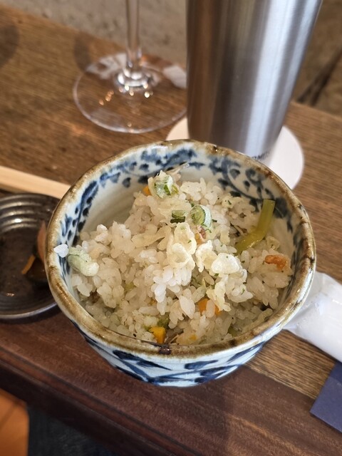 鮎は馬瀬川から、鰻は矢作川で獲れたものでした。また、鹿は北海道から、猪は九州から来ており、その時獲れる最上のものを仕入れているとのことです。天ぷらは山菜や野菜がありましたが、特にオリジナリティが溢れていたと思ったものがありました。それは「猪のつくね」でした。猪肉をつくねにするのは理解できるのですが、まさかそれを天ぷらにして提供するということに、非常に驚きました。