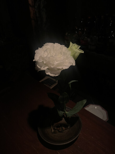またオーナーさんのこだわりが詰まっており、一輪の白い花、音楽、自家製のパンなど…