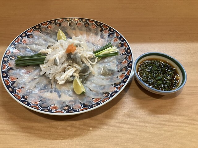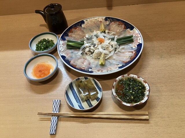 基本【白子コース】に、ふぐ刺し1人前追加(+3000円)で予約している。