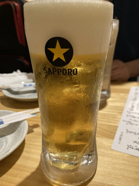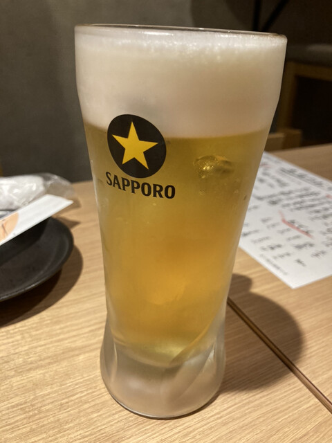 彼が30分後くらいに到着予定だったので、とりあえず1人で生ビールを。
