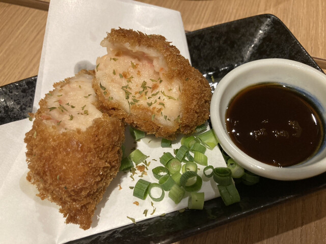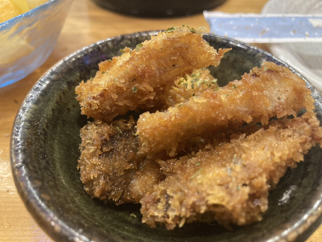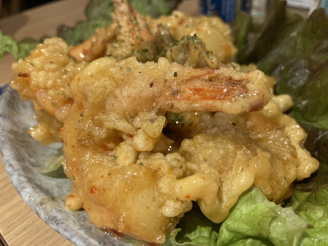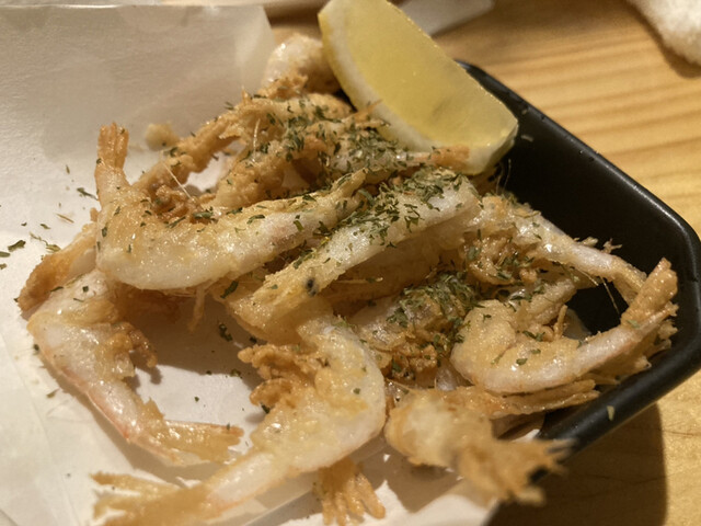 白海老の唐揚げは、頭の部分が苦手なので胴体?だけ食べて頭は彼にパス。笑