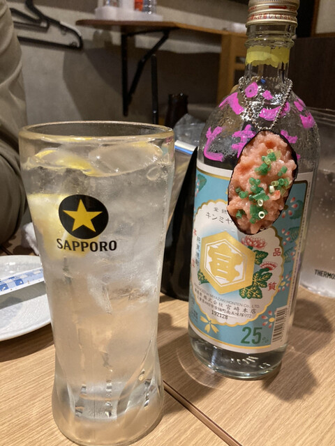 金宮ボトル+炭酸カットレモンと生ビールで乾杯!
