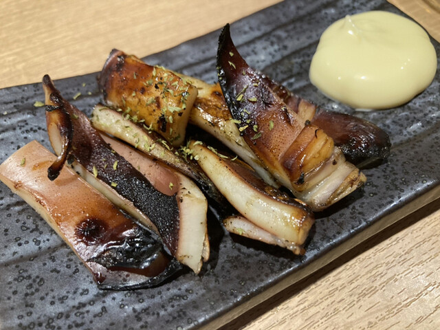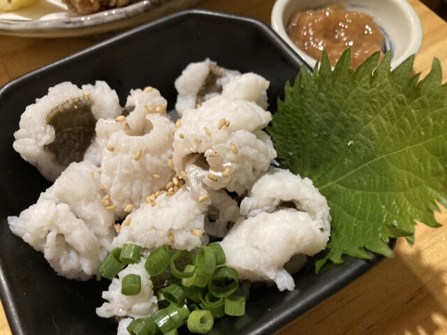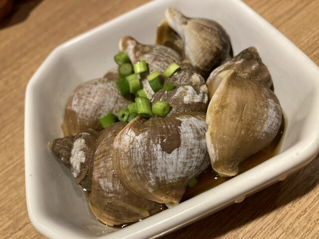 オススメされた貝(名前分からず)、お刺身と焼きと両方いただきました!