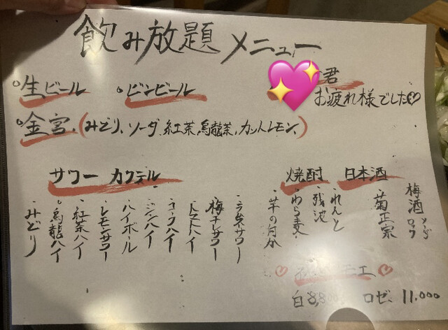 飲み放題付きコース!こんな感じ!とお願いして♪