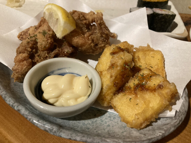 唐揚げと厚焼玉子の天ぷらハーフ&ハーフ ?円