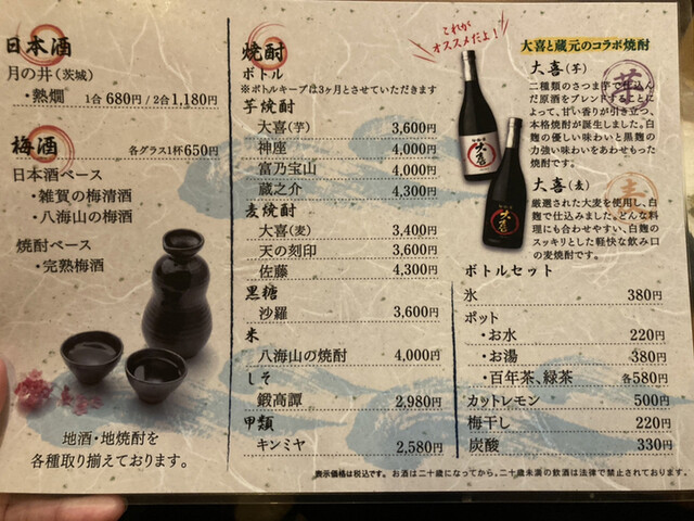 チューハイたくさんと日本酒3合飲んで、お会計は2人で16000円ほど。