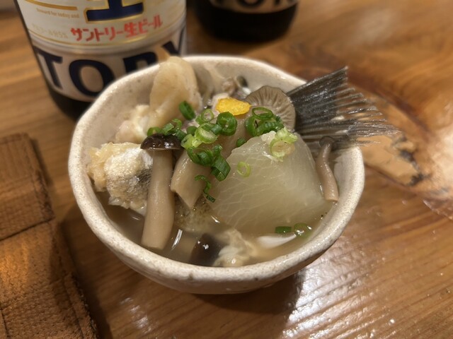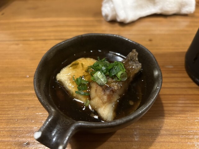 お通しは白身魚と豆腐の揚げ浸しでした。