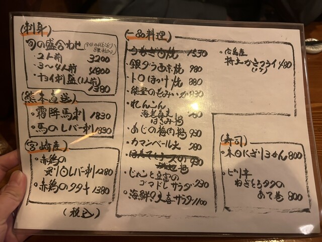 2人で瓶ビール数本おかわりして、夫は金宮ボトルお湯割り梅干し入りを飲んで、お会計は10,000円ほど。