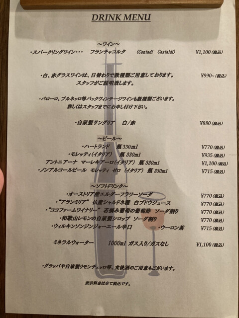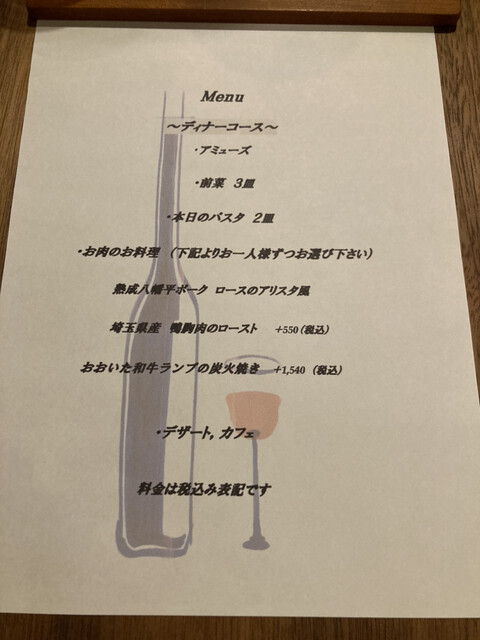 アミューズ、前菜3皿、パスタ、メイン、デザートという内容です。