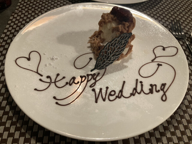 予約フォームで「結婚記念日」を選択していたので、メッセージプレートをつけてくださいました!