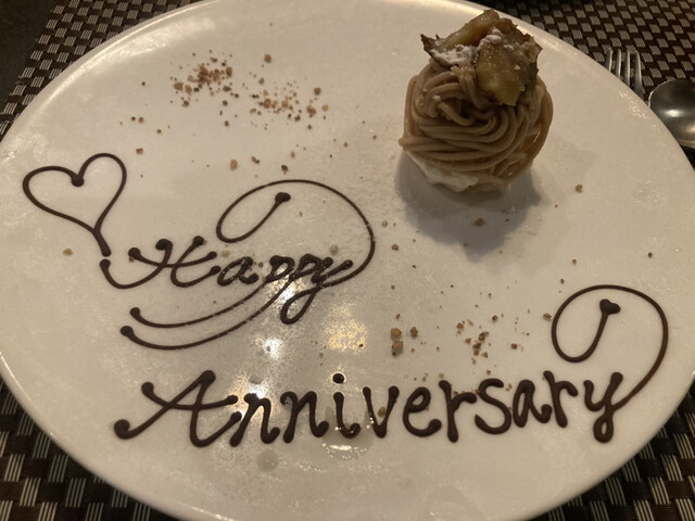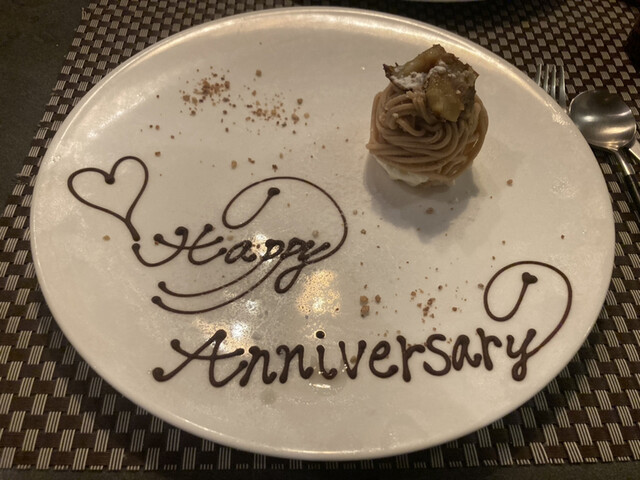 予約の際に記念日利用の旨を記入したら、デザートにメッセージをつけてくださいました!