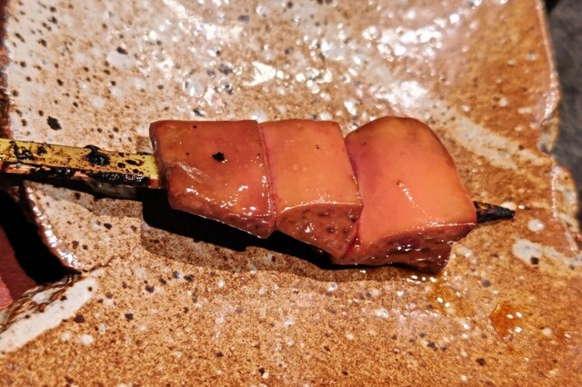 以前はちょうちんとレバーが一串になっていましたが、今回は、ネギも一緒だ!ちょうちんと鶏のすき焼き風が一串になっています。