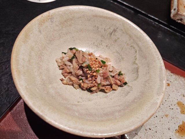 こちらのお店のつくねはこのようにして蓮根のシャクシャク感を取り入れて、大根おろしも鬼おろし的な部分も残してあります。