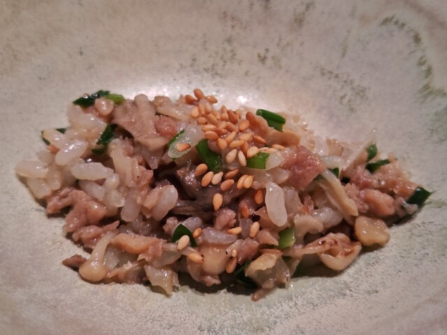 楽しい仲間(最後は全員仲間になりました。)との会話、ご主人との会話、美味しい料理、美味しいお酒、居心地良い空間と設え、そして心遣い、満足の時間は過ぎて行き、気がつくとなんと!23時を過ぎていました。