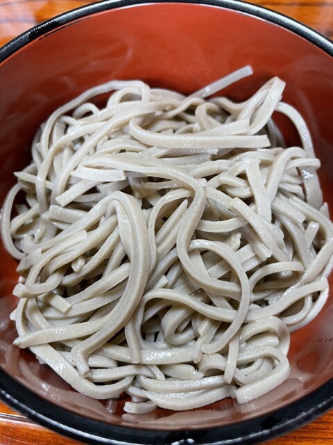 更科蕎麦の細麺喉越しが好きなタイプですがこれはこれで美味い