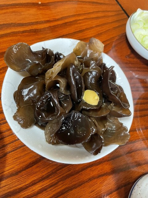 ゆうがお煮物、生キクラゲ、わらび一本漬けですがどれも美味い!