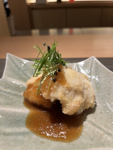 食材は、世間に知られている鯛から、希少な赤かぶ、秋の鱧や香箱蟹まで用意いただきました。食材本来の旨味を邪魔ならないようにソースを工夫されました。完成度と季節感が漂う料理でした。夜しかやっていないので、満月を見えるような精錬されている内装でした。
