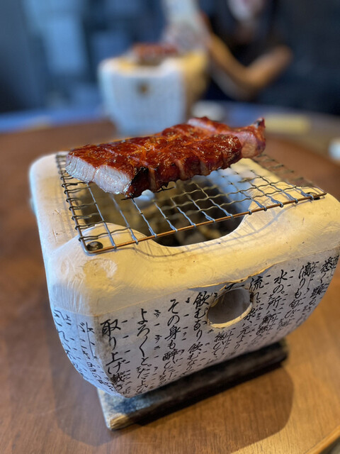 まずは身のジューシーさを味わう叉焼が炭火台にのって出てきます