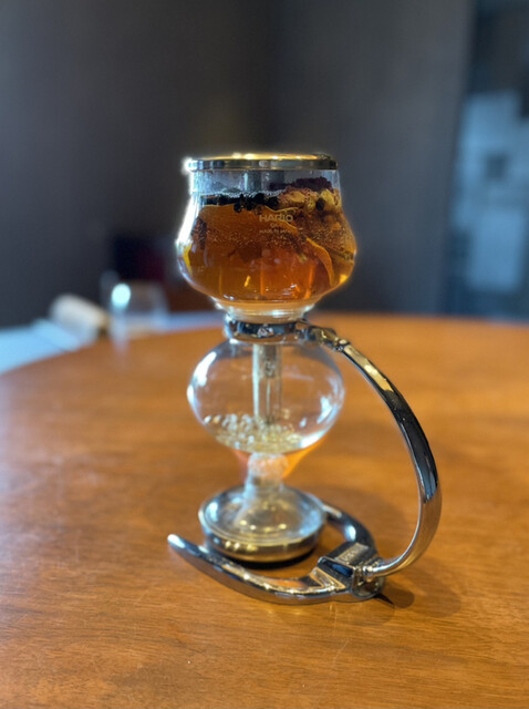 サイフォンで目の前で香りをつけてました