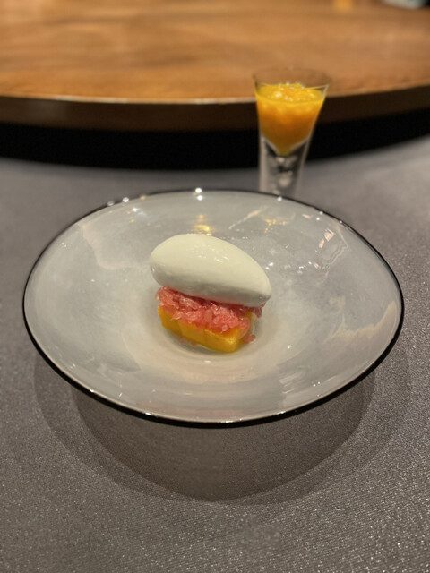 ・ココナッツのアイス、グレープフルーツ、マンゴーにマンゴーのソース